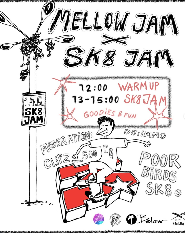 Was für ein Tag! Am Samstag, dem 14.06., haben wir bei der Skate JAM auf der Mellow JAM wieder einmal Mal richtig einen rausgehauen! Von 12 bis 15 Uhr wurde im @mellowpark_berlin – unserem zweiten Zuhause neben dem Nest – geskatet, gefeiert und einfach die gute Vibes genossen.