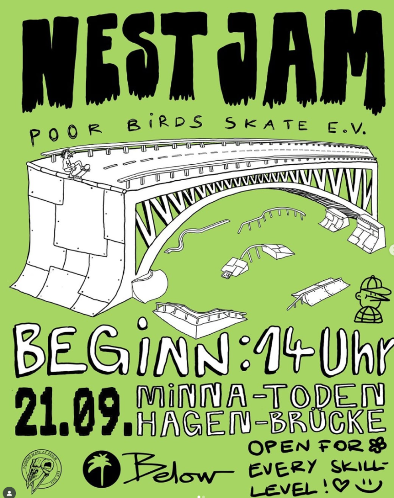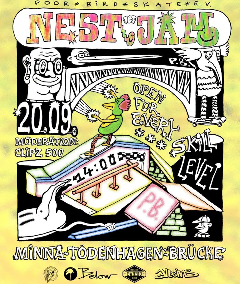 Klang fast zu gut, um wahr zu sein – aber wir hatten es am 22.06. von 14 bis 16 Uhr tatsächlich angekündigt! Wir luden ein, gemeinsam mit einigen der besten Skater aus Berlin zu jammen (okay – vielleicht nicht die besten, aber auf jeden Fall gute Birds, wir schwören! 🦅🦜🦆🐓)