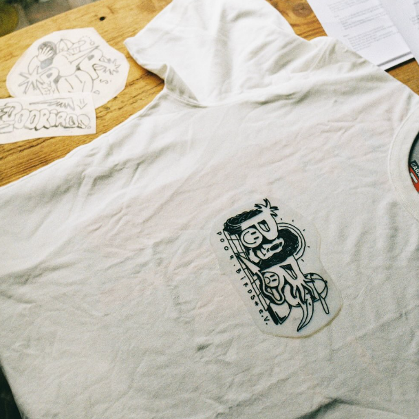 Siebdruck-Kleidung und selbst gepresste „Poor“-Boards, die cool aussehen und gleichzeitig unsere Projekte unterstützen.